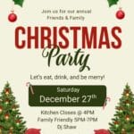 Saturday Dec 27th – join us for our annual friends & family Christmas Party! ️🍾 Celebrating our family, friends, customers & staff. Kitchen & dining room closing at 4PM Family friendly 5PM-7PM Music from @itsdjshaw_ !! We hope to see you all there! #christmasparty #shopperscafe #moodyst #waltham #christmas